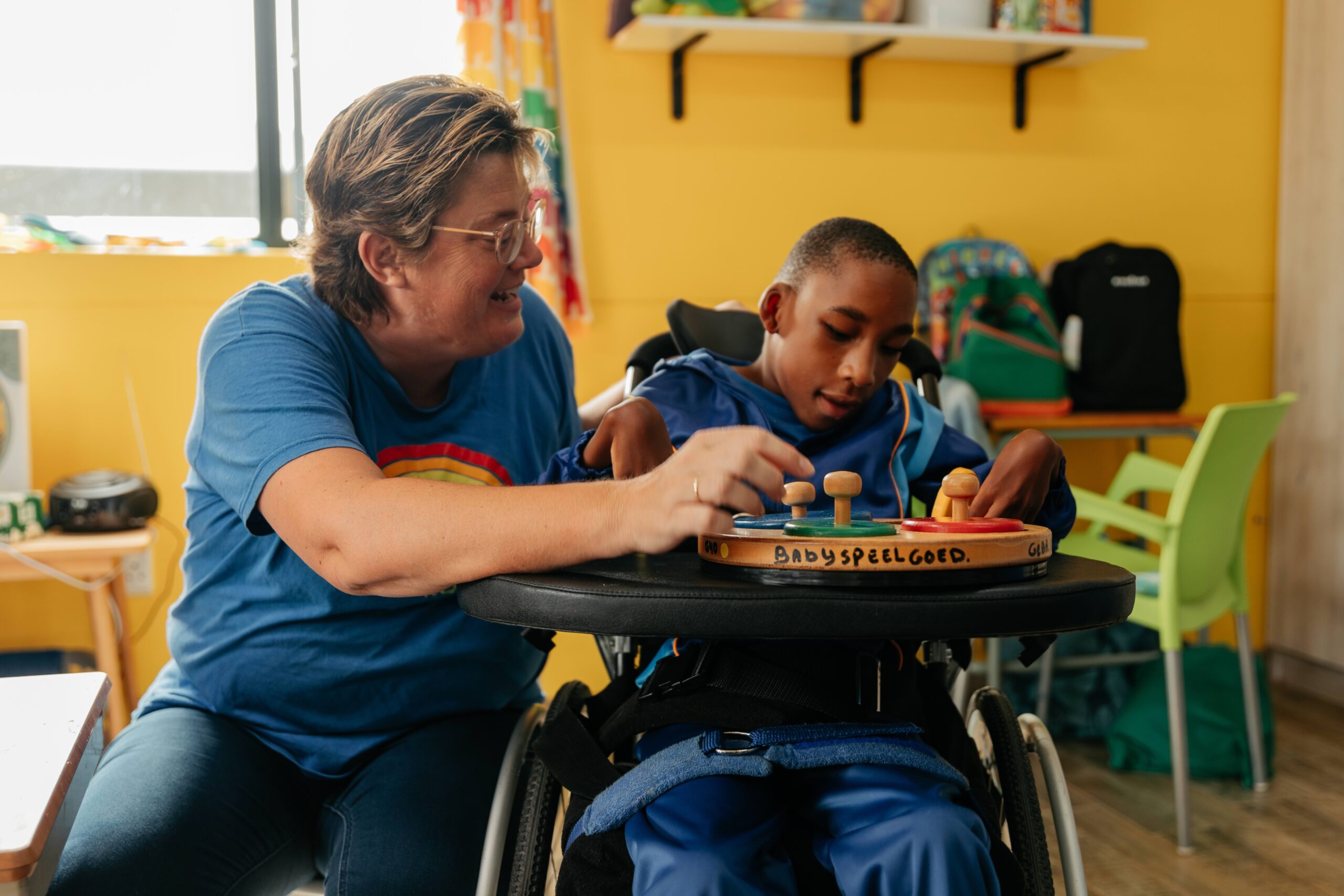 The specialized guidance and personalized resources at Rainbow Angels are primarily focused on playfully strengthening communication, motor skills and social-emotional development, each at his or her own level. Throughout the day there is exercise through swimming, ball games and massage. Stand-up tables and walkers are used to encourage walking and strengthen muscles.